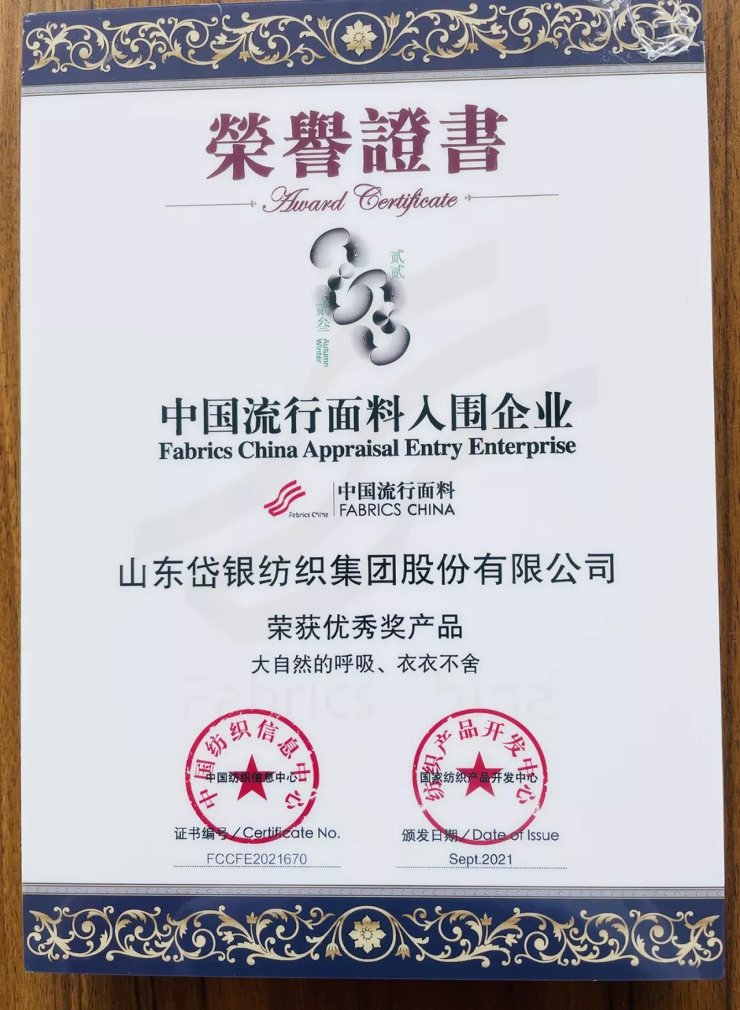 近日, 在由中國(guó)紡織工業(yè)聯(lián)合會(huì)主辦的2021中國(guó)國(guó)際面料設(shè)計(jì)大賽、第46屆(2022/2023秋冬)中國(guó)流行面料入圍評(píng)審活動(dòng)中,岱銀集團(tuán)紡織研究院參評(píng)的面料“大自然的呼吸”和“衣衣不舍”榮獲中國(guó)流行面料優(yōu)秀獎(jiǎng)。中國(guó)國(guó)際面料設(shè)計(jì)大賽是中國(guó)紡織行業(yè)最具權(quán)威的紡織設(shè)計(jì)專(zhuān)業(yè)賽事,宗旨是鼓勵(lì)和推進(jìn)以市場(chǎng)為導(dǎo)向的紡織產(chǎn)品創(chuàng)新,提升創(chuàng)新產(chǎn)品的市場(chǎng)競(jìng)爭(zhēng)力。此次入選的兩款面料產(chǎn)品主打漢麻元素,注重面料舒適性和功能性的有機(jī)結(jié)合,面料在穿著過(guò)程中舒適透氣,同時(shí)采用長(zhǎng)絲短纖復(fù)合紡紗技術(shù)與抗菌長(zhǎng)絲復(fù)合,達(dá)到持久抗菌的效果。